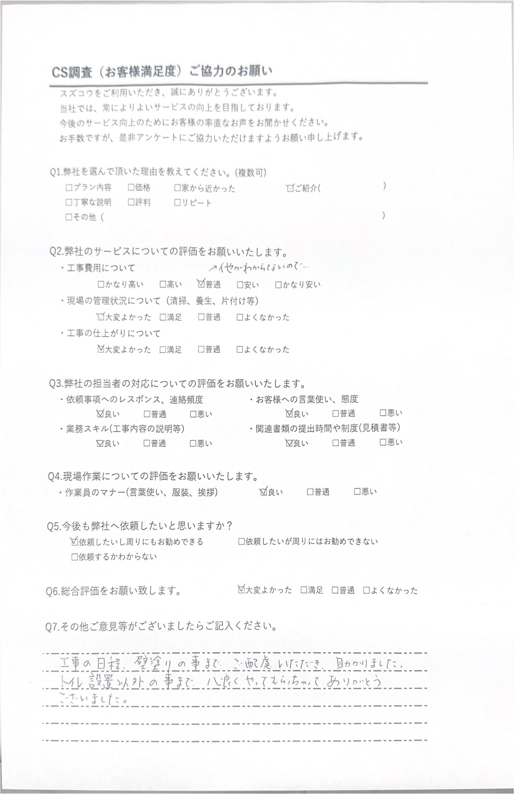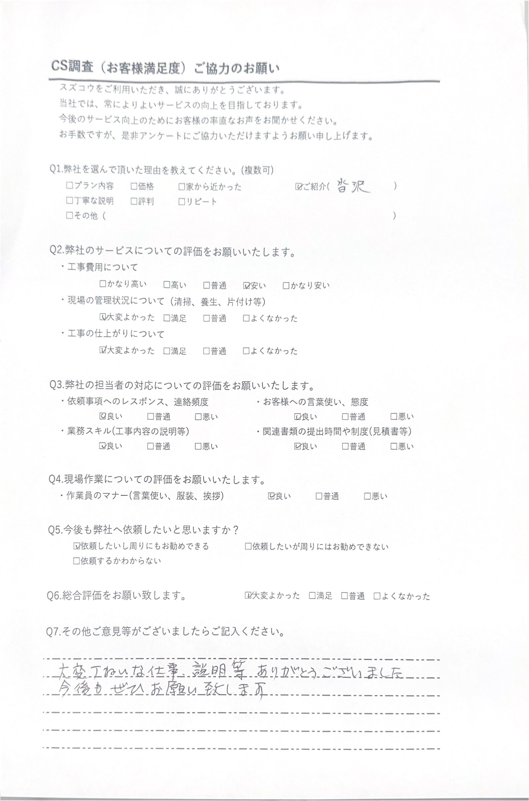 当社ではGoogle口コミの他、工事完了後に直接いただいたご感想も掲載しています。